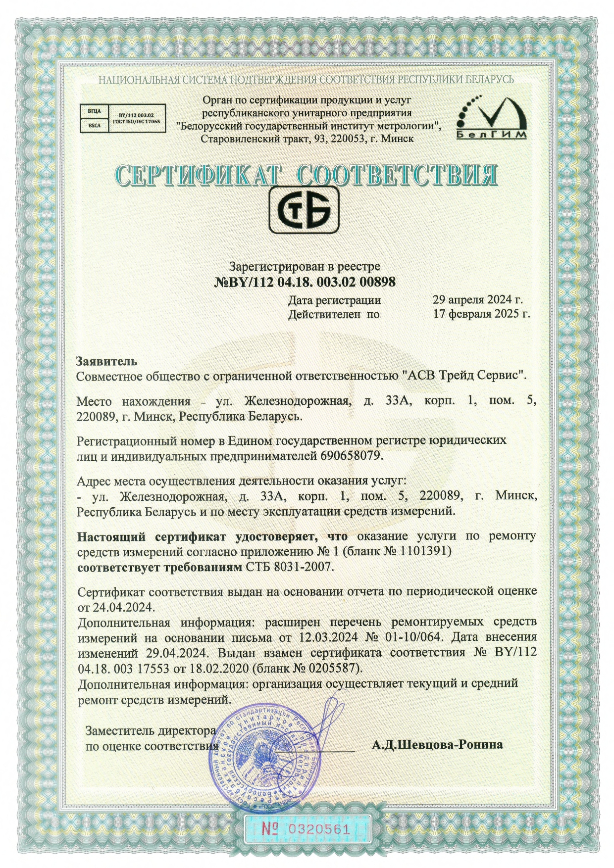 THE QUALITY OF PRODUCTS, SERVICE AND SERVICES OF OUR COMPANY IS CONFIRMED BY CERTIFICATES