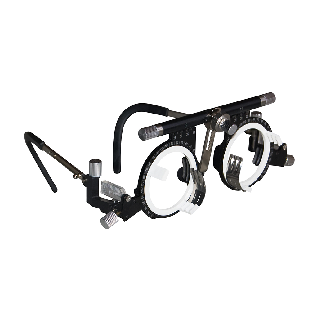Прочная пробная оправа, предназначенная для взрослых, обеспечивает полную регулировку положения носа и ушей.